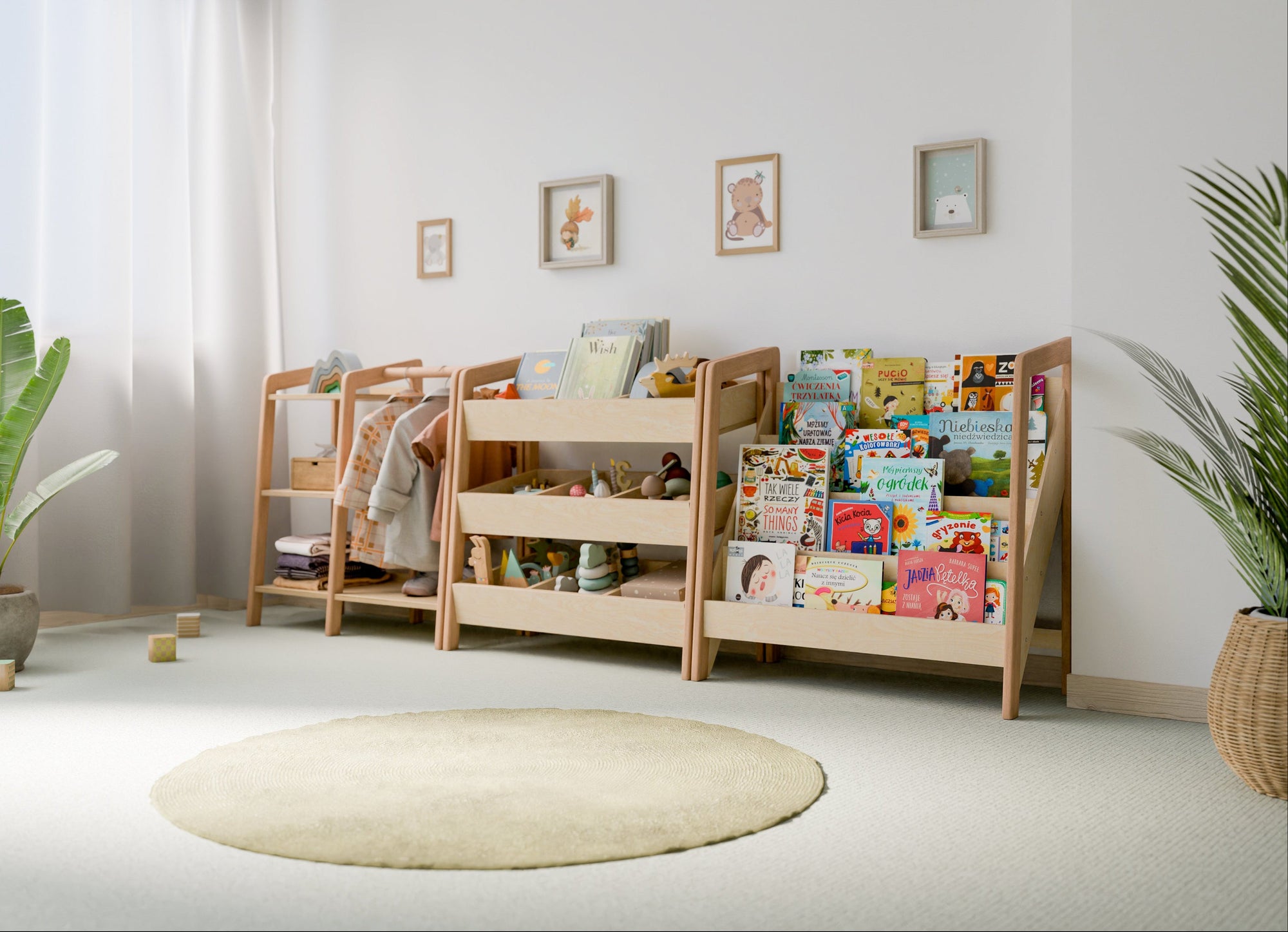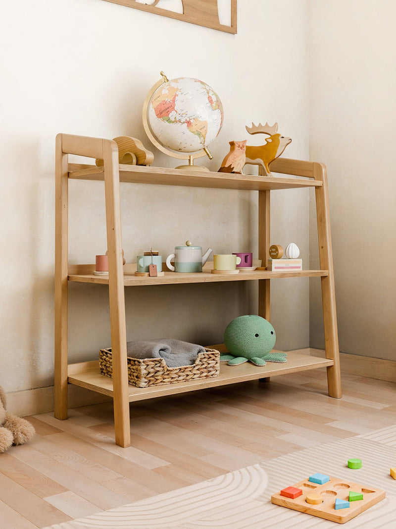 We bought the Front Facing Nursery Bookshelf Natural Wood — AURIS for our 10 months old daughter who is in the phase of pulling herself up on anything that serves as standing and walking aid. :)