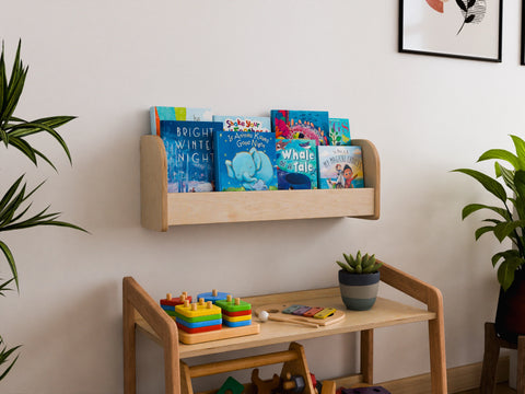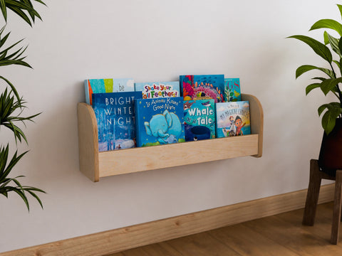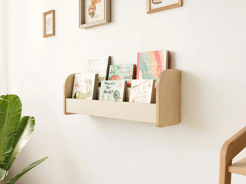 Bring order and charm to your child’s room with our children's wall mounted bookshelf, inspired by the Montessori approach. Thoughtfully designed for little hands, it allows children to see and easily access their favorite books, encouraging independence and a love for reading.