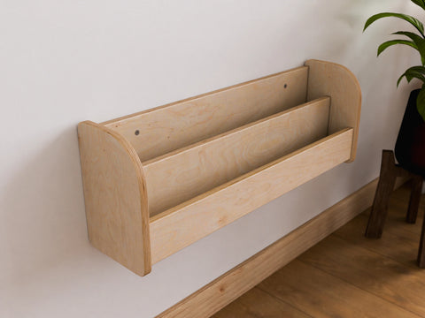 Crafted from birch plywood, this floating bookshelf combines durability with timeless style. Its compact size makes it ideal for nurseries, playrooms, or small spaces, while the smooth, natural finish blends seamlessly into modern and Montessori-inspired interiors.