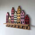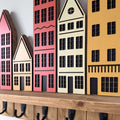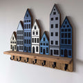 Haczyk i półka ścienna inspirowana miastem – organizer ścienny z litego drewna w kolorze ciemnego dębu z 7 haczykami do przedpokoju